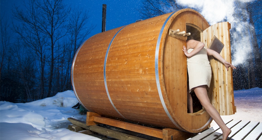 Winter Spa Barrel Sauna - The Great Canadian Wilderness